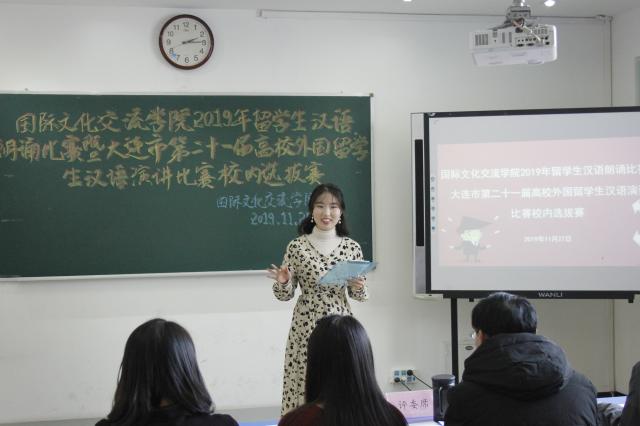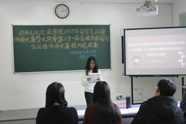 国际文化交流学院举办2019年留学生汉语朗诵比赛暨大连市第二十一届高校外国留学生汉语演讲比赛校内选办赛