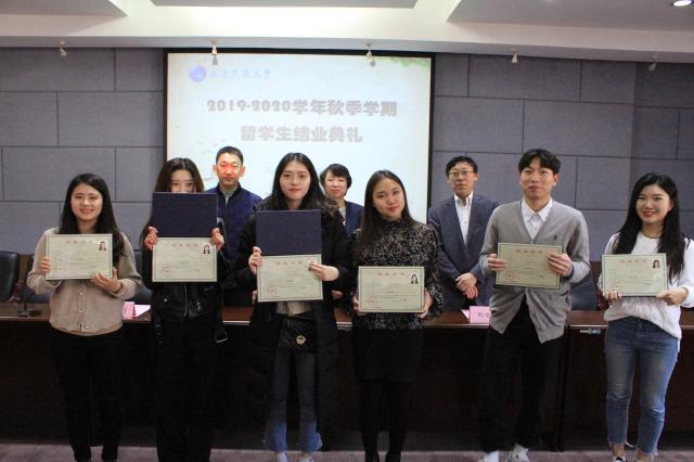 院长左莉在发言中首先代表学校和学院对顺利完成学业的同学们表达了祝贺,她谈到,各位同学通过不懈的努力,克服了学习生活上的困难,提高了汉语水平,收获了满满的友谊,希望同学们在今后的学习生活中能够追求梦想,将学习变成一种习惯;加强沟通,成为中外友好使者;珍藏回忆,多多与母校联系,并祝福各位同学在新的人生征途上,创造佳绩,拥有精彩幸福的人生。与会领导为结业的留学生颁发结业证书并合影留念。
