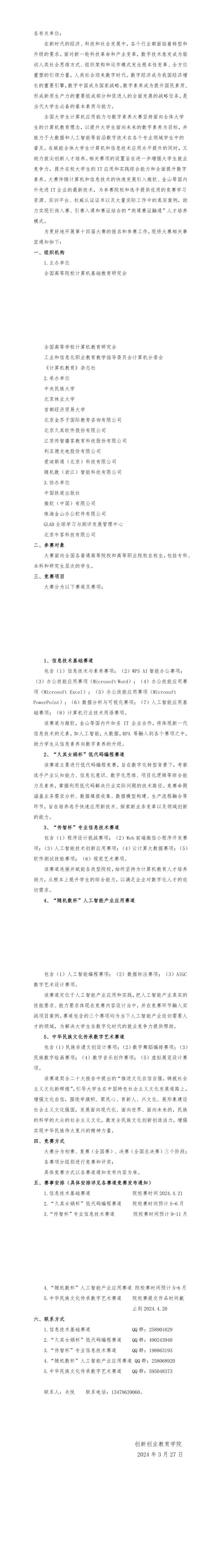 关于组织参加2024年第十四届全国大学生计算机应用能力与数字素养大赛的通知