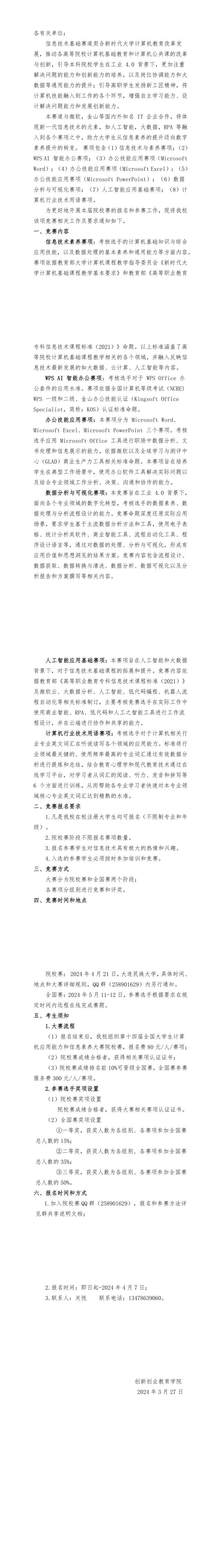 关于组织参加2024年第十四届全国大学生计算机应用能力与数字素养大赛信息技术基础赛道竞赛的通知