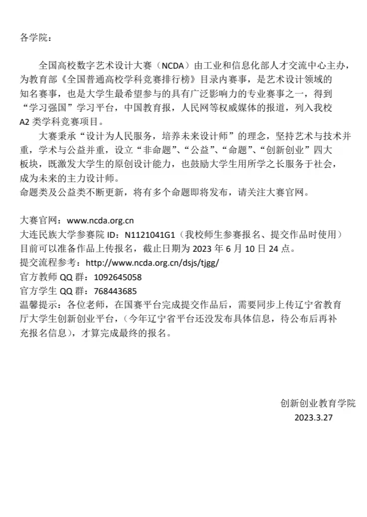 关于参加2023年第十一届全国高校数字艺术设计大赛的通知