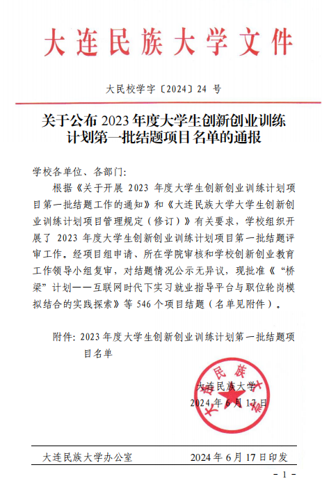 关于公布 2023 年度大学生创新创业训练 计划第一批结题项目名单的通报