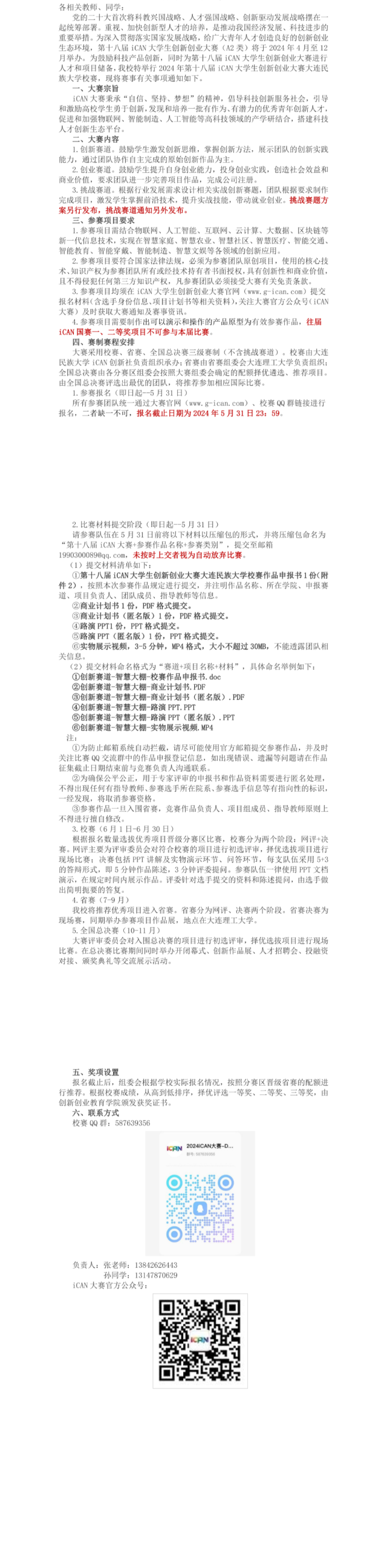 关于举办2024 年第十八届 iCAN 大学生创新创业大赛 bat365中文官方网站校赛的通知