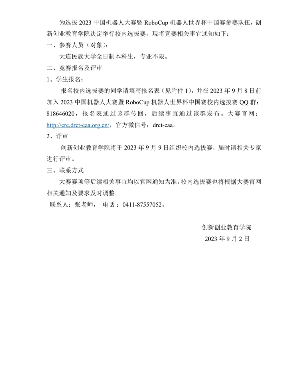 2023中国机器人大赛暨RoboCup机器人世界杯中国赛bat365中文官方网站校内选拔赛通知