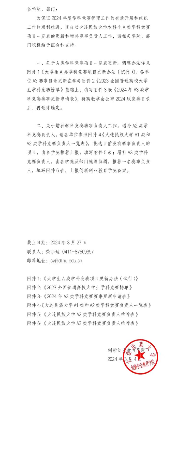 关于2024年度本科生A类学科竞赛项目一览表调整及增补赛事负责人的预通知