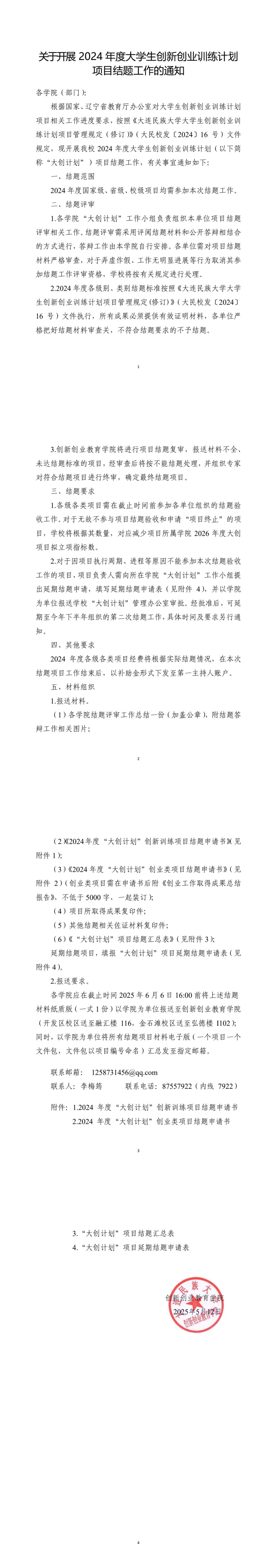 关于开展2024年度大学生创新创业训练计划项目结题工作的通知