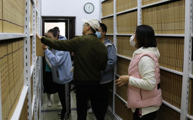 在档案馆老师的引领下,大家分别参观了教学、实物等档案库房。教学档案库房与每一位同学相关,里面不仅保存着教学类文件,还有每位同学的成绩最权威记载。老师对照着纸质档案,认真讲解档案馆保存的学生档案内容,永久保存的档案类别等。实物库房里则保管着学校获得各类奖项等,见证了学校建设以来三十余年取得的巨大成就。看着眼前一排排老档案,老师从1978年国家议定建立东北民族学院的有关事宜开始讲起,简要介绍了学校发展历程,让大家感受到老一辈开拓者艰苦创业、坚韧不拔,一代一代继承者不忘初心、牢记使命、立德树人、奋发有为,感受到党和国家对民族教育事业的高度重视,学校在铸牢中华民族共同体意识中为党育人、为国育才,激发广大师生爱国爱党,爱校荣校,当好新时代民族团结的“传承者”“守护者”“践行者”。
