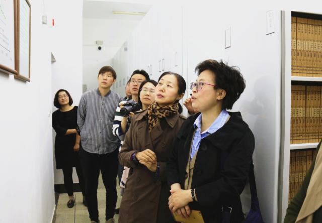 随后,大家参观了档案馆舍、库房、数字化操作间及相关设施,宋江岩馆长介绍了档案馆的情况,在馆舍及操作间布置、温湿度调控等业务建设上将好的做法与来访同仁分享交流。