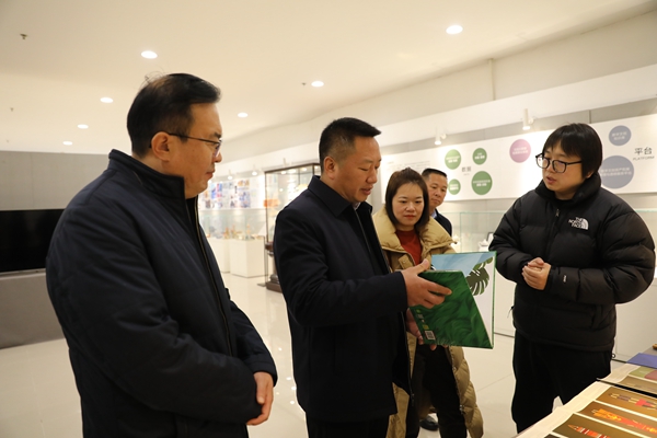 在校期间,田兴国一行观看了学校宣传片,实地走访了学校生物技术与资源利用教育部重点实验室、文冠果产业国家创新联盟和设计学院教学成果展。