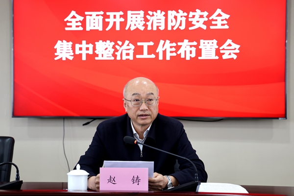 赵铸强调,要以高度认真的态度严格落实“管行业必须管安全、管业务必须管安全、管生产经营必须管安全”要求,推动各项安全举措落地见效。要充分发挥领导小组牵头抓总的作用,党委常委、校领导带头抓好分管领域集中整治和联系单位督导指导,各单位、各部门主要负责同志做到党政同责,其他班子成员要落实“一岗双责”,注重发动群众、师生积极参与,聚焦宿舍、实验室等师生密集区域,对排查出的隐患问题,实行清单式闭环管理,确保立行立改、动态清零。要加强消防安全知识宣传与应急疏散演练,提升师生自防自救能力,构建安全有序的校园环境,为学校各项事业发展行稳致远提供坚实保障。