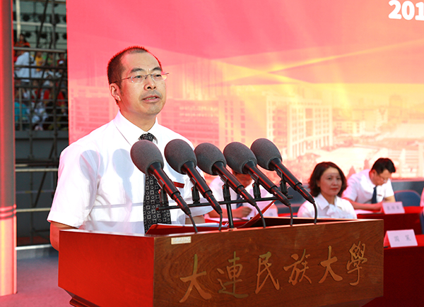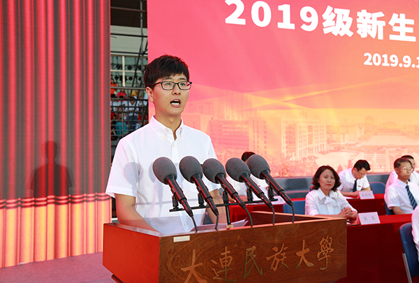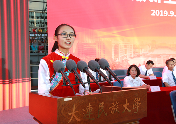 丁克毅代表全校56个民族的师生员工,向来自全国各地的5000余名各族新同学表示衷心祝贺和热烈欢迎,向教育培养同学们的老师和家长表示真诚感谢。丁克毅介绍了学校发展建设取得的成绩,围绕“爱国和怎样爱国”这一主题,对即将开启崭新大学生活的新生提出希望和要求。他指出,今年是“五四”爱国运动100周年,是新中国成立70周年,同学们从入学伊始,丰富的大学生活就与对祖国的热爱联系在了一起。热爱祖国,一定要了解中国的历史,特别是学习中国共产党领导各族人民争取国家独立和民族解放的历史。热爱祖国,就应该为祖国富强,为中华民族伟大复兴而读书,掌握先进的科学技术和文化知识。刻苦学习,就是大家最好的爱国方式。希望同学们转变思想认识,端正生活态度,在人生的四季里尽情地怒放青春,共同谱写大连民大的新乐章。