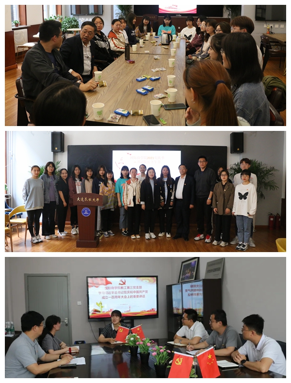 视频直播结束后,国际商学院教工党支部、各学生党支部、学院团委纷纷组织召开座谈会,学习习近平总书记在庆祝大会上的讲话,研读讲话精神。会上,大家热切讨论,争先发言,回顾百年党史,表达对党的崇高敬意。