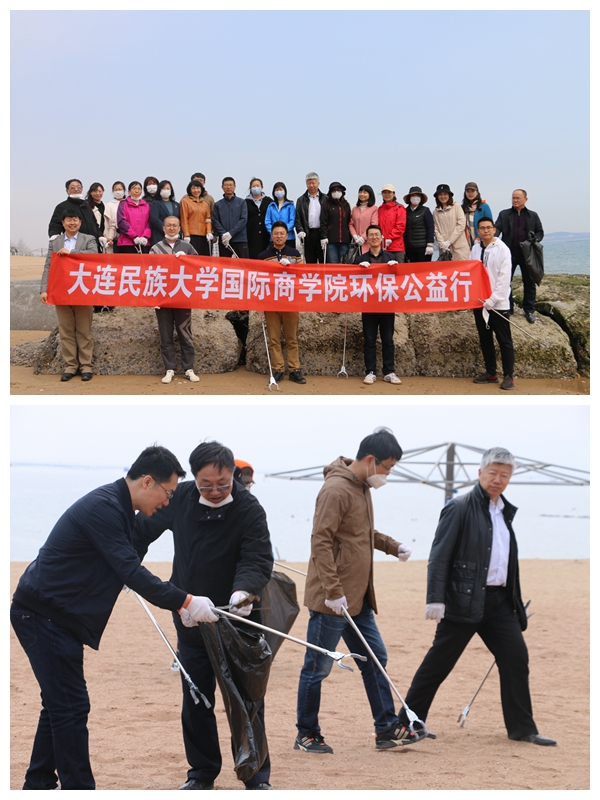 为丰富党史学习形式,突出党员教师的先锋带头作用,增强学院师生学习党史的热情,让“学党史、践使命”化为实际行动,国际商学院组织全体教师前往金石滩滨海旅游区,开展“宣传绿色环保、扮靓大连海滩——金石滩滨海旅游区白色垃圾污染清理环保公益活动”。与此同时,国际商学院学生干部也在校园内开展垃圾分类志愿服务活动,指导同学们正确进行垃圾分类。