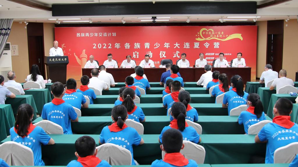 民大新闻网讯 8月14日,“各族青少年交流计划——2022年各族青少年大连夏令营”启动仪式在bat365中文官方网站举行。中共大连市委统战部副部长、大连市民族和宗教事务局局长黄刚,大连市教育局局长鞠振伟,共青团大连市委书记陆凯,大连市发展和改革委员会社会处处长刘晗,内蒙古自治区赤峰市巴林右旗人大常委会党组书记、主任哈斯陶格陶,以及学校党委书记赵铸,党委副书记、校长丁克毅出席启动仪式。