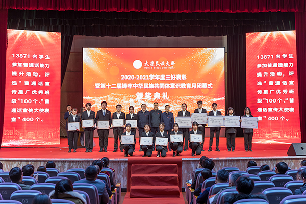 在2020-2021学年度奖学金评比中,223个班集体获评先进班集体、4864名学生获得各类奖学金。579个集体、812名学生在第十二届铸牢中华民族共同体意识教育月活动中获奖。与会领导为获奖集体和个人代表颁奖。
