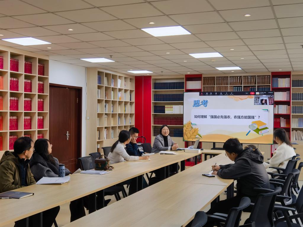 本次集体备课聚焦“纪念抗战胜利 坚定民族信念”“阔步迈向农业强国 促进城乡共同繁荣发展”“践行多边主义 完善全球治理”和“正确认识中国经济热点问题”四个专题,分别由胡馨仪、孙擎、王艳卓、李海鹰四位教师担任主讲。备课会上,主讲教师围绕各自专题进行了系统的主备课展示,详细阐述了教学设计思路、内容框架、重点难点把握以及拟采用的教学方法与典型案例。在交流研讨环节,与会领导、督导及任课教师结合自身教学实践与学术思考,围绕理论深度、内容准确性、案例时效性、表达方式、课堂互动设计、课件呈现效果等多个方面展开了深入讨论,提出了诸多建设性意见。
