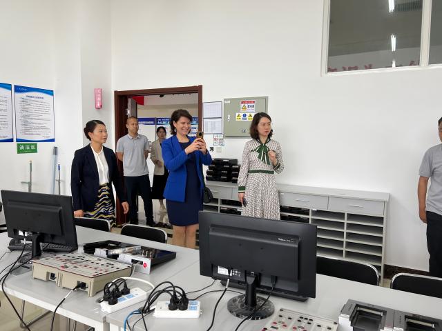 座谈会前,代表团参观了机电工程学院“民族之魂”方程式赛车队和车辆理实虚一体化实验室。