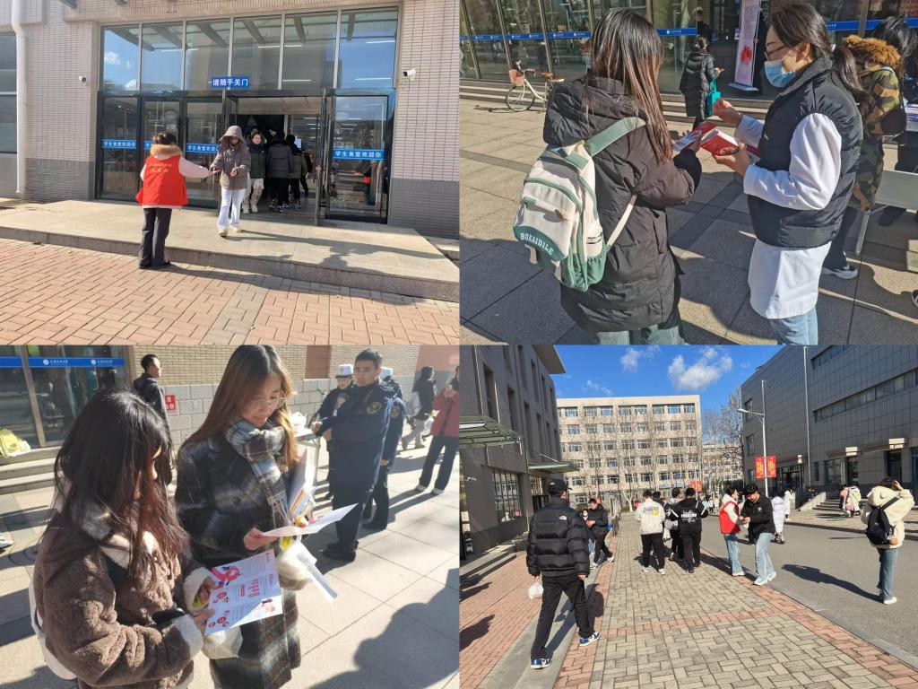 艾滋病日当天卫生所联合大连金普新区海关的防疫人员、校团委青年志愿者协会的同学们,发放艾滋病防治知识宣传手册。同时向师生推荐关注“中国疾控艾防中心”微信公众号,了解更多相关资讯。