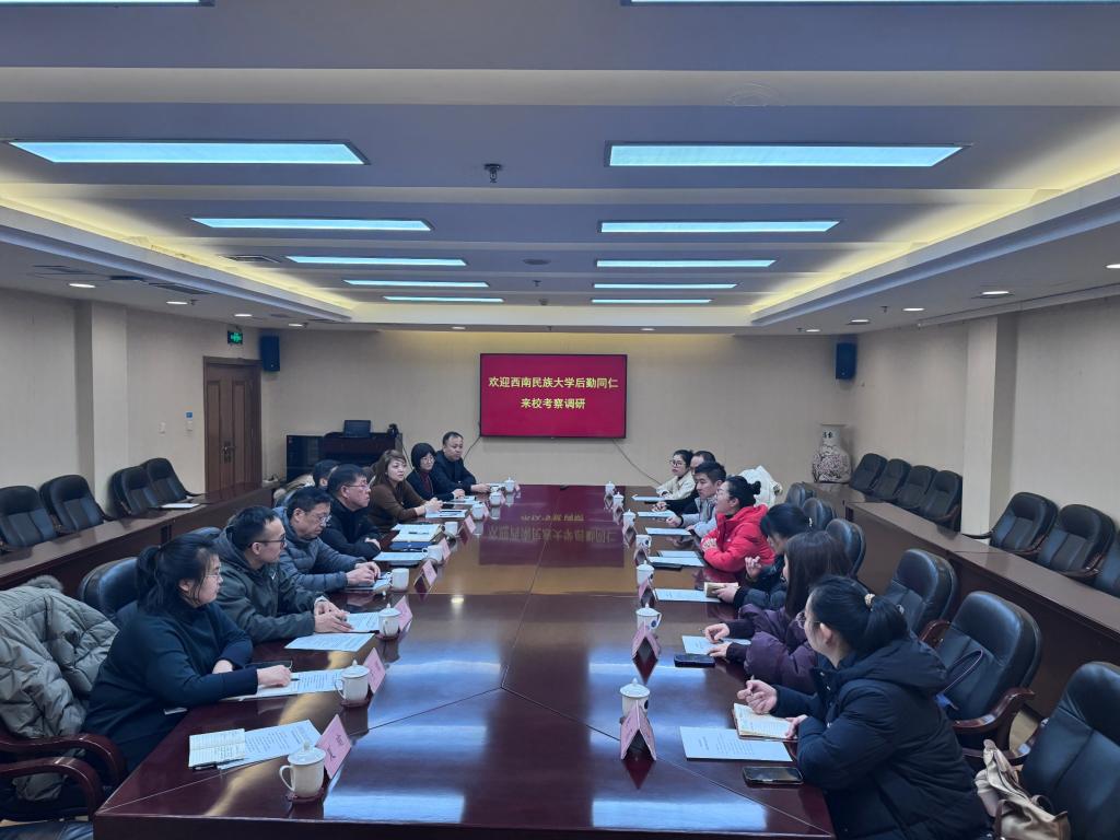 12月19日,西南民族大学后勤党委书记伍敏等一行7人来bat365考察调研后勤管理等工作。bat365后勤管理处处长李力、生活服务中心有限责任公司董事长赵霄鹏、资产经营管理有限公司、培训中心有限责任公司副总经理刘福余等陪同调研。
