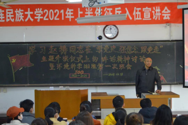 为扎实做好大学生思想政治教育工作,积极构建“大思政课”育人格局,发挥主题班会在中华民族共同体意识实践教育体系中重要作用,及时解决学生思想上存在的问题和困惑,以铸牢中华民族共同体意识为主线,以庆祝中国共产党成立100周年为契机,引导广大学生从党的百年伟大奋斗历程中汲取继续前进的智慧和力量,弘扬以爱国主义为核心的民族精神和以改革创新为核心的时代精神,发扬“脱贫攻坚”精神,坚定社会主义信念,使各民族大学生始终保持积极进取的人生态度、昂扬向上的精神状态。在本次班会中,班长召集学生们奏唱国歌,并介绍班会目的和意义,团支书、心理委员、与多名同学上台演讲让同学们了解党的历史,让我们更加坚定信念跟党走,意识到党的伟大。最后,辅导员万博一对班会进行了点评,并讲述更多的党史让我们了解。通过这次班会,我们了解到要全面学习党的光辉历史。