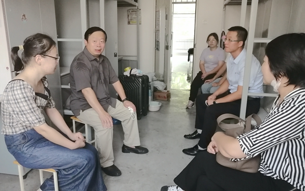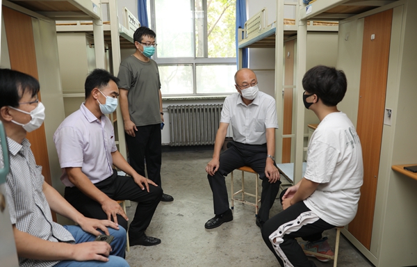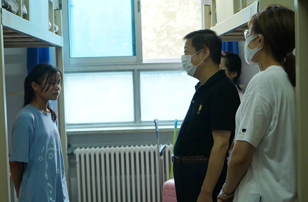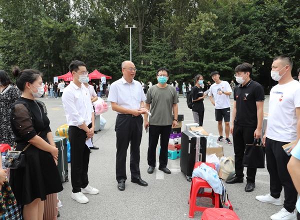 学校领导分别深入各迎新现场和学生公寓,慰问迎新师生员工及前来报到的新同学。