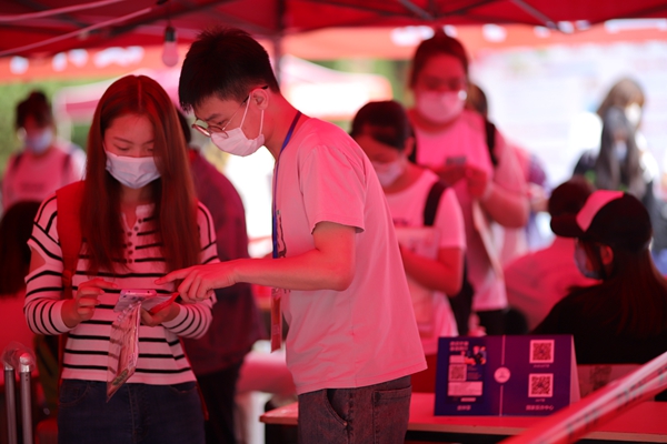 “请在这边排队,检测体温。”“打开手机的国务院行程码。”“我帮你拿行李吧。”……迎新现场,迎新志愿者穿梭其中,他们承担着路线指引、人流疏导、行李搬运、协助查验证件、体温检测等工作。