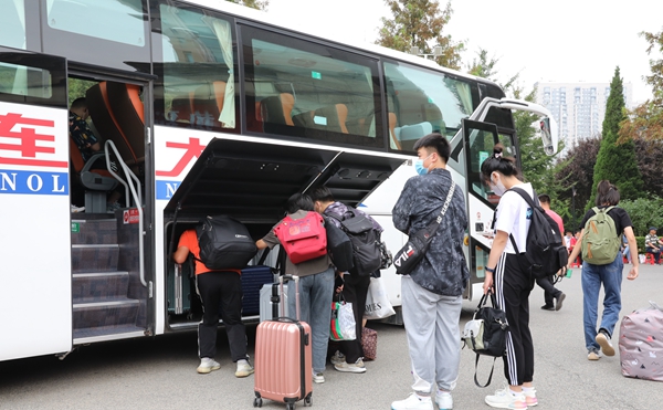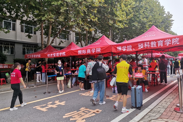 为了避免人员过度集中,学校提前对迎新线路进行了规划设计,在开发区校区培训中心广场、金石滩校区中区西门和北区西门分别设置了报到处。每一位新生除了在入校前提供48小时核酸阴性报告,在入校时还需再次进行一次核酸检测,在校园防疫工作上形成“双重保障”。