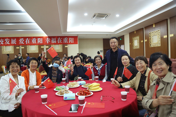 民大新闻网讯 金秋十月,丹桂飘香。在传统佳节重阳节到来之际, 10月14日上午,学校在金石滩校区组织开展了2021年“讴歌建党百年,我看学校发展,爱在重阳幸福在重阳”退休教师重阳节活动。党委书记赵铸,校长丁克毅,党委副书记杜元虎,党委副书记、副校长陈明华,党委常委、党委宣传部部长、党委统战部部长包和平,党委常委、党委组织部部长王慧,相关部门负责人、师生代表与80名退休老领导、老同志欢聚一堂,共庆佳节。
