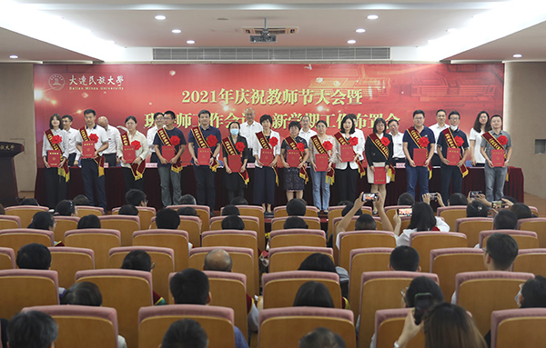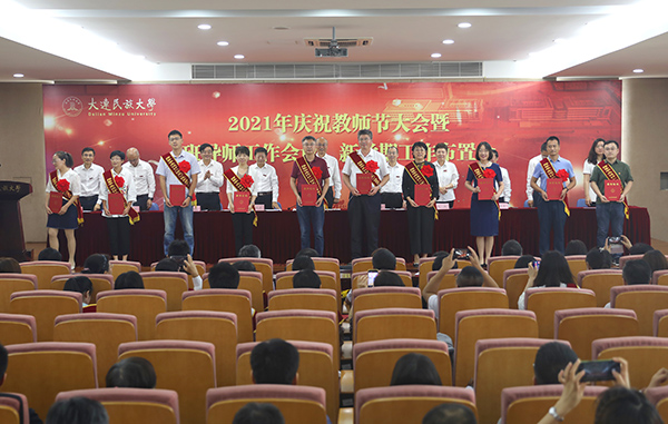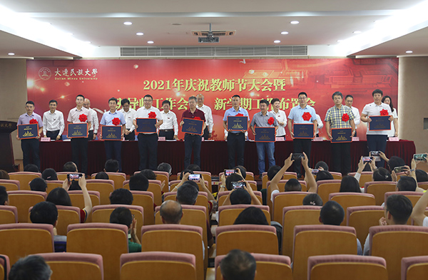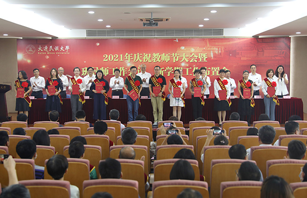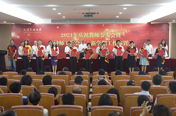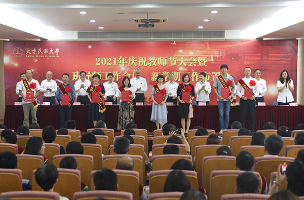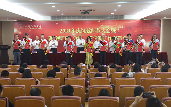 党委副书记杜元虎宣读了2020—2021学年教师节评优结果并通报一年来获得省级以上政府奖励名单。与会领导为获表彰教师和集体颁发证书。