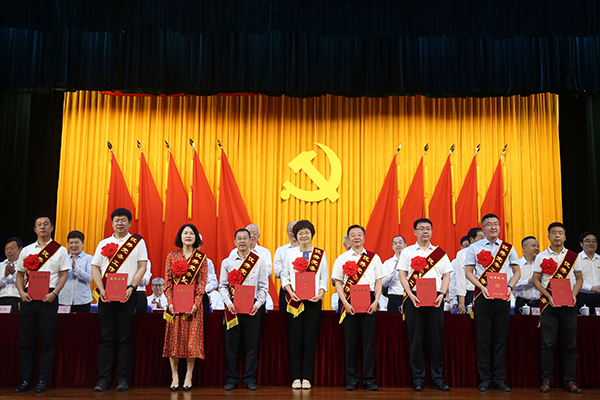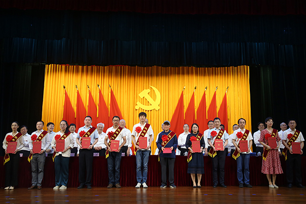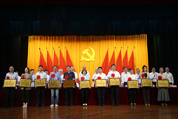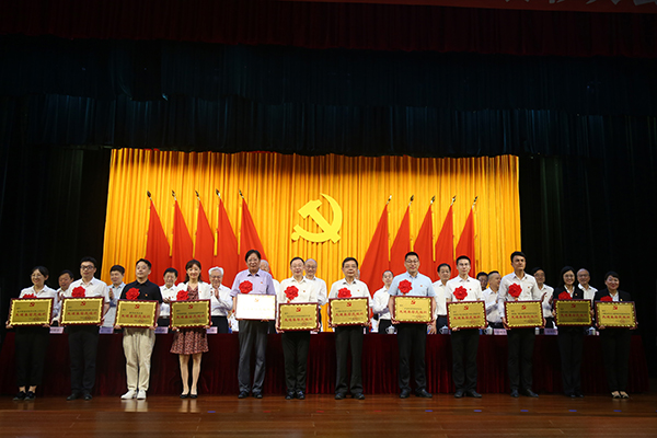 党委副书记杜元虎宣读了“光荣在党50年”纪念章获得者名单和学校优秀共产党员、优秀党务工作者、先进基层党组织表彰名单。学校领导为获奖集体和个人颁奖。