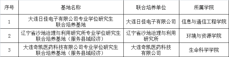 2020年辽宁省专业学位研究生联合培养示范基地培育名单