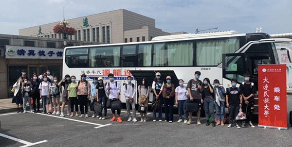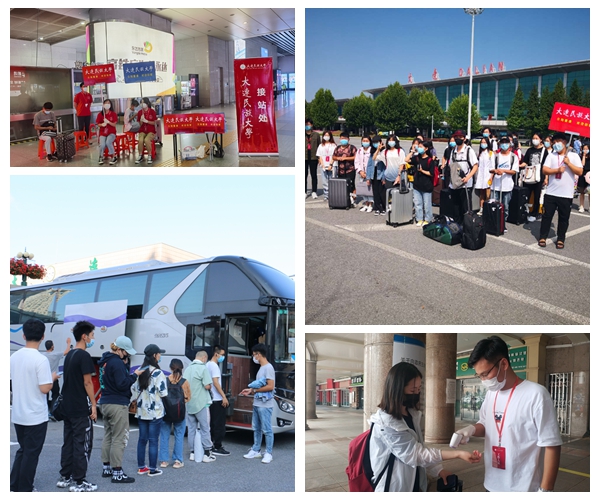 28日清晨五点,天色微亮,接站师生乘坐大巴从民大出发,分赴大连北站、大连站、机场,在出站口最明显的位置竖好指示牌、摆好桌椅,静候返校报到的民大学子。