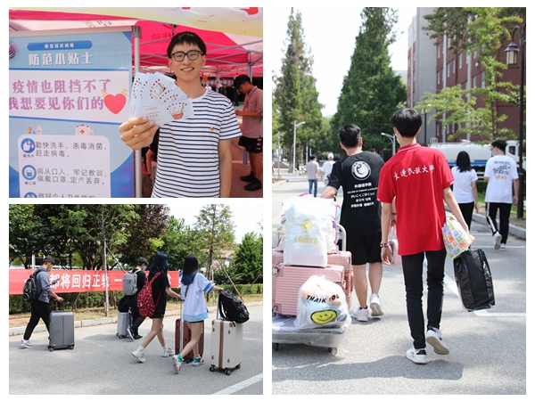 根据上级部门相关精神,学校按照“错区域、错层次、错时、错峰”的原则,依照2020年秋季学期开学工作方案,学生共分四个批次返校。久别重逢,学校各部门分工协作、密切配合,引导学生有序报到。学生处以及各学院还为返校学生精心准备了不同的暖心“大礼包”:牙刷、牙膏、毛巾、口罩、洗手液、消毒液……从每一个细节给与学生关心。