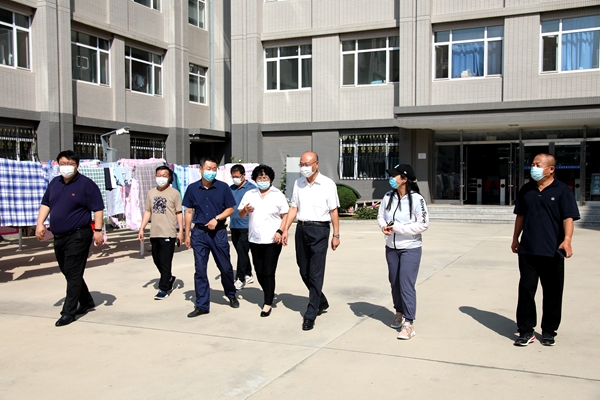 在金石滩校区,赵铸详细了解了师生返校、后勤管理、学生生活服务保障情况,要求相关部门切实履行好职责,积极协调促进各项工作细节落实到位,为学生提供一个安全有序、整洁舒适的学习生活环境。他特意来到后勤管理处,肯定了他们的工作成绩,感谢全体人员为各族学生返校所做的细致周到的工作,感谢宿舍管理阿姨们的辛勤付出,为广大同学营造了安全、舒适、温暖的学习生活环境,嘱咐工作人员为学生服务的同时一定要注意劳逸结合,做好自身防护工作。