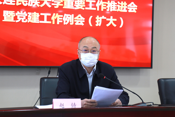 民大新闻网讯 5月9日上午,学校召开重要工作推进会暨党建工作例会(扩大),深入学习贯彻习近平总书记近期重要讲话精神,进一步落实中央和国家民委、地方有关部署,推进学校重点工作。党委书记赵铸主持会议并讲话,党委副书记、校长丁克毅作工作布置。