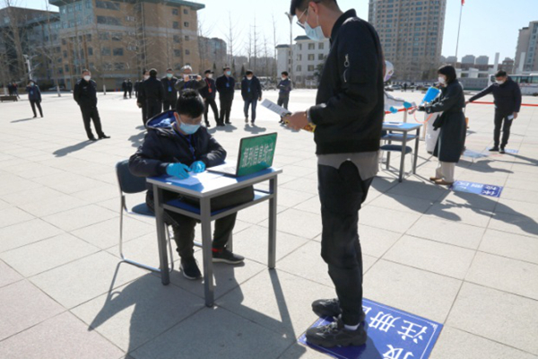 间距1.5米排队等候报到