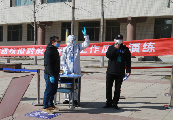 本次实战演练是针对学生新学期开学报到及返校后疫情防控和应急处置进行的一次“大练兵”。按照应急演练方案的设计,围绕学生返校接站、开学报到、公寓入住,教职工错时入校、师生错时上下课、错时就餐、错时洗浴、师生发热情况处置、集中医学隔离观察、校园公共卫生条件保障等十个方面开展应急演练。