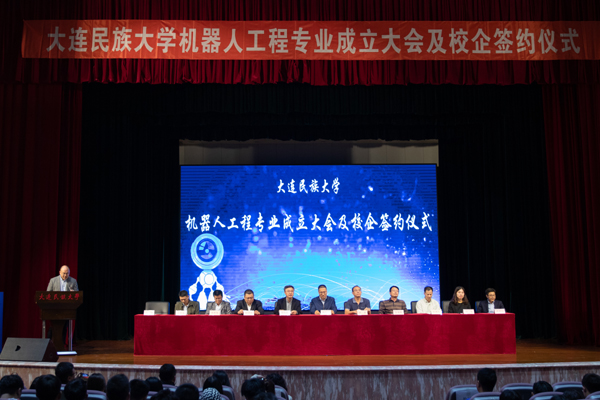 民大新闻网讯 10月8日,学校举行机器人工程专业成立大会及校企签约仪式。副校长黄永东,相关校外专家学者和行业高管,学校教务处、学生处负责人及机电工程学院领导班子、师生代表参会。会议由机电工程学院党总支书记张涛主持。