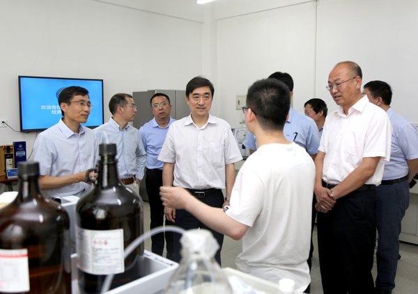 在校期间,王大南一行参观考察了生物技术与资源利用教育部重点实验室、设计学院教育教学成果展和辽宁省光电材料研究中心。