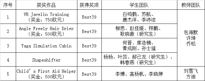 民大新闻网讯 日前,2018年德国iF天才设计奖本年度第一阶段获奖结果揭晓,bat365设计学院师生团队5项参赛作品获得Best39,其中,VR Javelin Training、Angle Freely Hair Drier、Child’s First Aid Helper三件作品荣获奖金1750欧元。