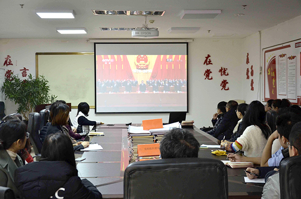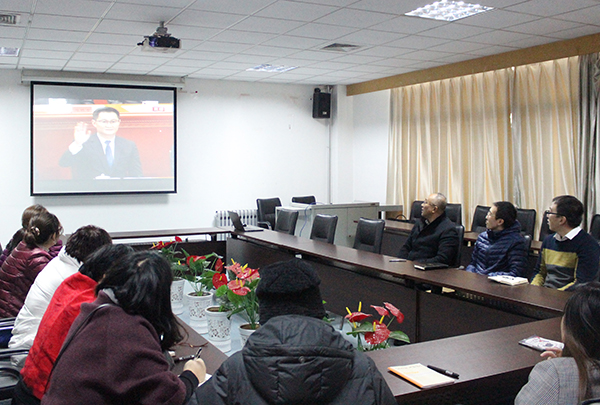 学校领导、机关全体工作人员及部分师生集中观看了大会直播盛况,各二级党组织也通过各种方式和途径组织收看大会直播。