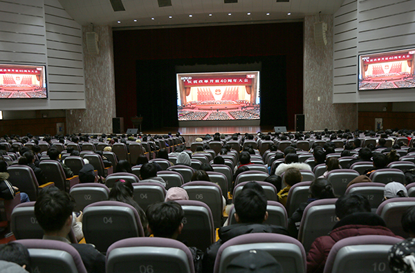通过收看大会直播,各族师生员工深受鼓舞、倍感振奋,对党和国家40年来取得的辉煌成就感到无比自豪与骄傲。40年来,我们党团结带领人民,实现了从赶上时代到引领时代的伟大跨越,书写了国家和民族发展的壮丽史诗。师生纷纷表示,新时期、新形势,在学校党委领导下,乘着bat365中文官方网站第一次党代会的东风,以“三个突出”战略为引领,立足岗位,不忘初心,牢记使命,把第一次党代会的各项任务落到实处,为学校的建设发展添砖加瓦,为实现“两个一百年”奋斗目标、实现中华民族伟大复兴的中国梦不懈奋斗。