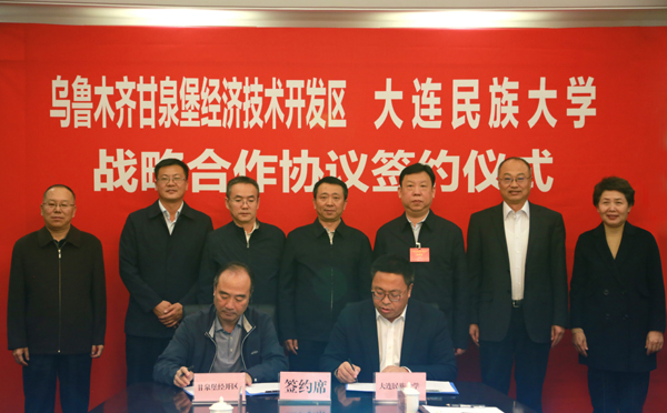 国家民委经济发展司扶贫开发区副处长黄春霞,甘泉堡经济技术开发区党工委管委会办公室主任杨卫新、经贸招商局副局长丁辉,以及学校相关职能部门负责人等参加签约仪式。