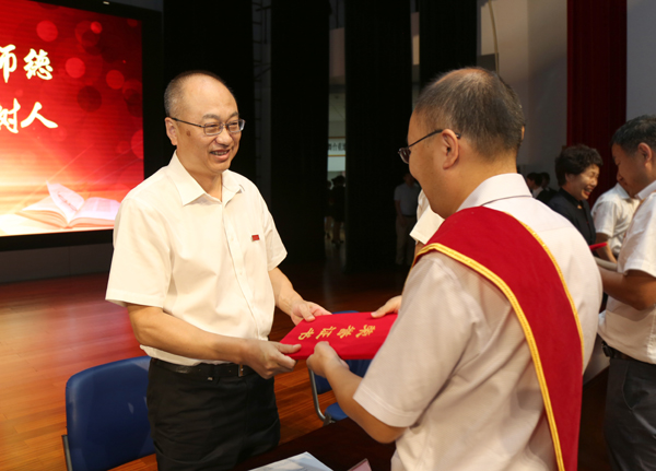 会上,杜元虎宣读了教师节评优结果,通报一年来获得市级以上政府奖励的先进个人和集体名单。与会领导为获表彰教师和集体颁发了证书。