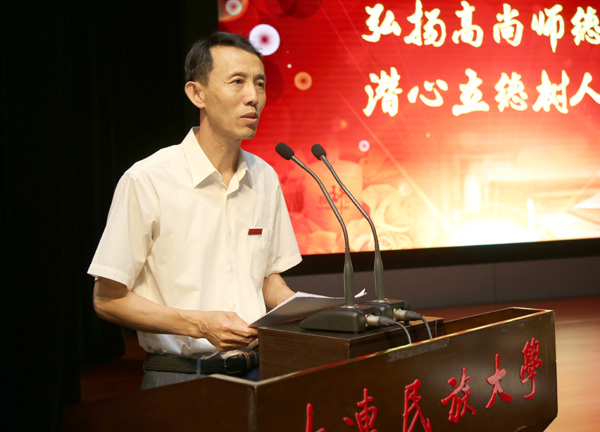 刘玉彬代表学校党委作了讲话。他首先向辛勤耕耘在教学、科研、管理和服务第一线的全体教职工致以节日的祝福和崇高的敬意,向受到表彰的226名优秀教师和20个优秀集体表示祝贺。他指出,一年来,学校党委抢抓机遇,深入实施“三个突出”发展战略,重点做好“三项重点工作”,着力推进“三件大事”,一系列新战略、新思路、新举措纷纷推出落地。学校全面从严治党不断深化,思想政治工作巩固提升,深化综合改革全面发力,学科建设步入新阶段,本科教学工作进一步强化,新校区规划与建设取得突破。这些成绩的取得,归功于国家民委和地方政府的大力支持、归功于学校党委的正确领导、归功于全体教师和干部职工团结协作、攻坚克难和无私奉献。