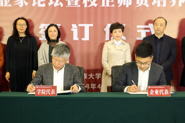 民大新闻网讯 4月18日,国际商学院举行校企师资培养协议签订仪式暨2018实践季启动仪式。学校学生处、教务处相关人员,瓦房店轴承集团有限责任公司风电事业部、大连凯越文化传媒有限公司、大连保税区万众科技孵化园有限公司、银河证券大连金马路证券营业部、大连瀚闻咨讯有限公司等五家企业负责人,国际商学院领导班子、全体教师、学生代表参加启动仪式。