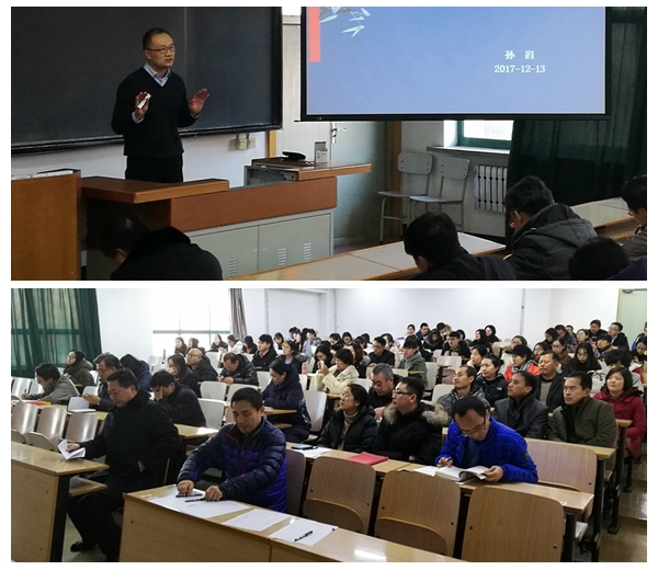 孙岿教授以十九大报告“实现中华民族伟大复兴是近代以来中华民族最伟大的梦想”为主线,对“中华民族”的具体含义、我国的民族政策、中国特色解决民族问题的正确道路做了深入阐释,指出统一的多民族国家是我国的基本国情,民族平等是民族团结的基础,民族工作的重心是把各族人民智慧和力量最大限度凝聚起来,同心同德为实现“两个一百年”奋斗目标、实现中华民族伟大复兴的中国梦而奋斗。孙岿教授结合十九大报告中的“坚持人民当家作主、实施区域协调发展战略、巩固和发展爱国统一战线、加强思想道德建设、有效维护国家安全、建设高素质专业化干部队伍”等六个方面的内容,详细讲解了建设好中华民族大家庭的具体路径。