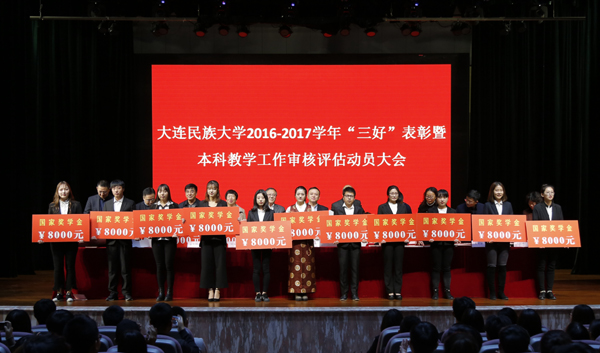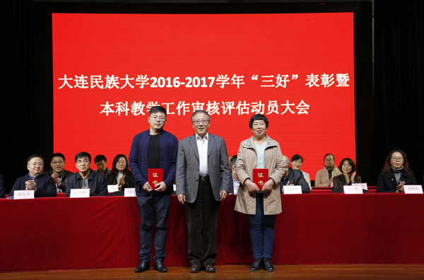 民大新闻网讯 11月5日,bat3652016-2017学年“三好”表彰暨本科教学工作审核评估学生动员大会在太阳鸟报告厅举行。党委副书记王晓华、副校长陈明华、学校教育发展基金会理事长王志永、捐资助学企业代表东山源能源集团大连东山热力有限公司和大连巨坤建设工程有限公司有关责任人出席大会。学校相关职能部门负责人、各学院党总支书记、副书记和全体学生工作者参加大会。会议由学生处长王喜春主持。