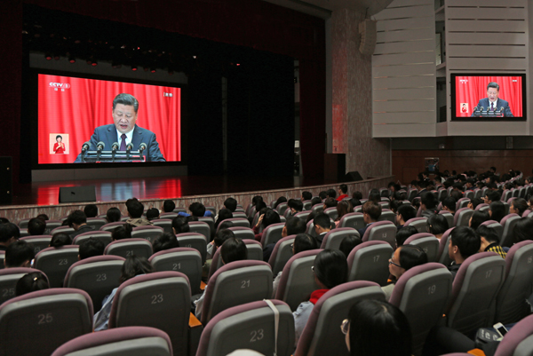 民院新闻网讯 金秋逢盛会,豪情谱华章。10月18日,中国共产党第十九次全国代表大会在北京人民大会堂隆重开幕。按照学校党委统一要求,上午9时,全校各族师生分别在两校区报告厅、阶梯教室等收听收看了党的十九大开幕会。