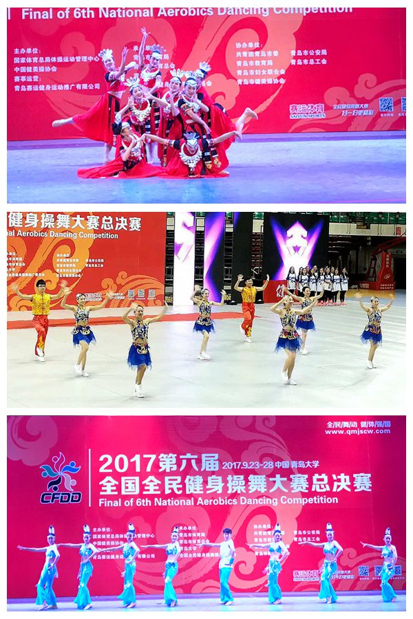 民大新闻网讯 9月23至28日,由国家体育总局、中国健美操协会、全国全民健身操舞推广委员会主办的2017第六届全国全民健身操舞大赛总决赛在青岛大学举行。bat365教师代表队获得一等奖4项,学生代表队获得一等奖3项、二等奖1项。宋君、张雪莹、董航、李孟华四位老师获全国优秀教练员称号。